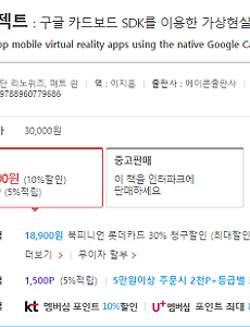 안드로이드/카드보드 VR1 안드로이드 카드보드 VR 서적 2017년도 1월에 출간된 안드로이드 카드보드 VR 책입니다.짬짬히 공부는 하고 있었는데, 이 책으로 한번 개념을 잡고 다시 도전해야겠습니다. 안드로이드 카드보드 VR 프로젝트 : 구글 카드보드 SDK를 이용한 가상현실 앱 개발저자 : 조나단 리노위즈, 매트 쇤역자 : 이지훈출판사 : 에이콘출판사발행 : 2017년 01월 26일쪽수 : 484가격 : 3만원ISBN : 9788960779686 2017. 1. 25. 이전 1 다음