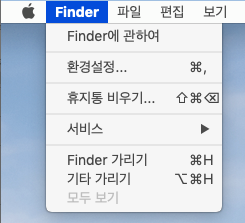 (1) Finder 메뉴에서 환경설정을 클릭합니다.