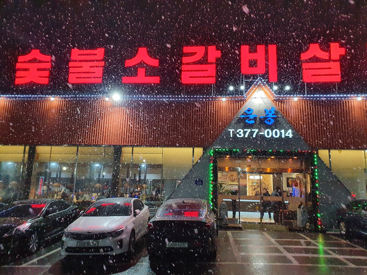 눈 내리는 운봉소갈비전문점 입구입니다.