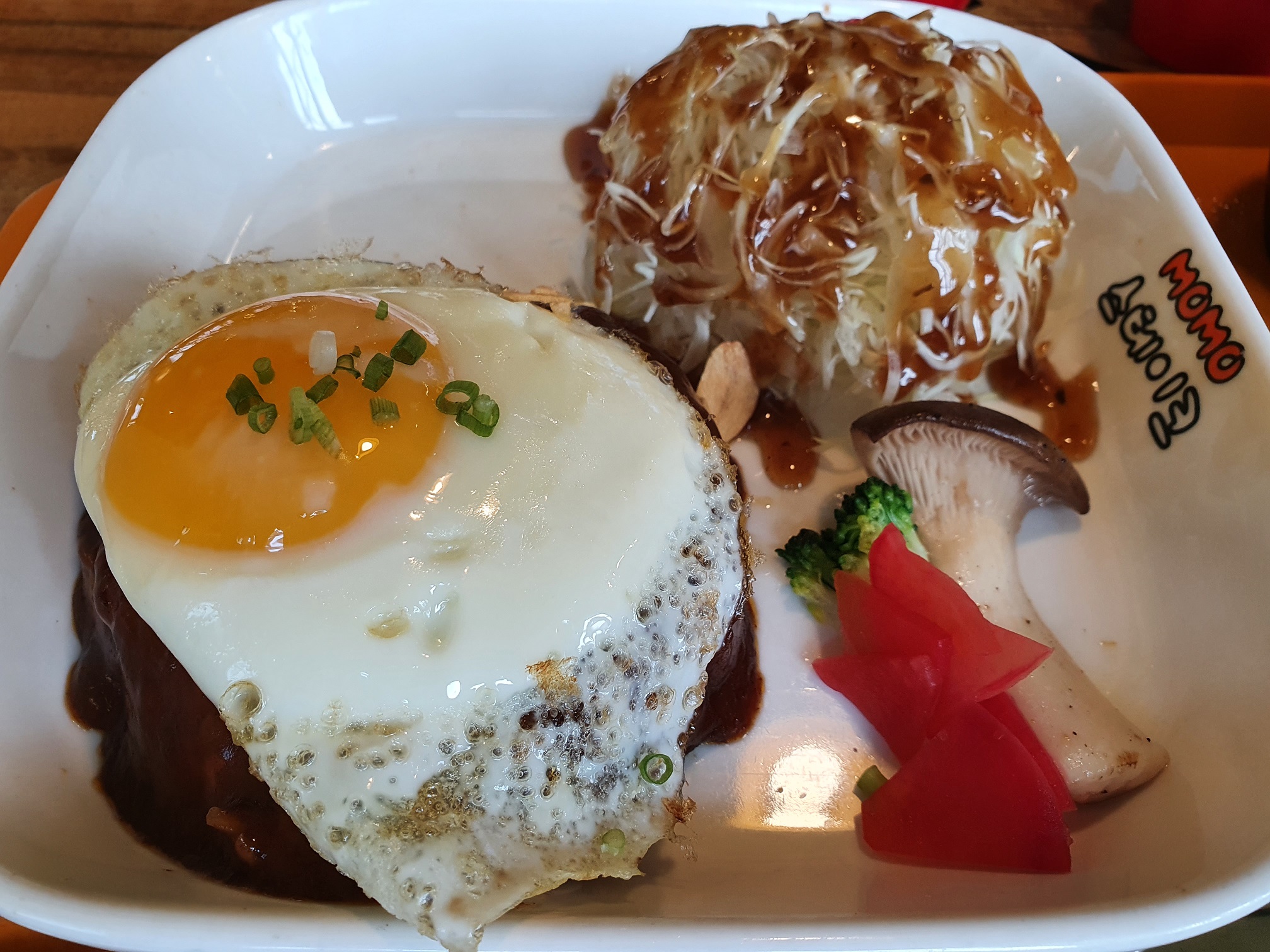 데미 함박 정식에 계란 후라이를 토핑했습니다.
