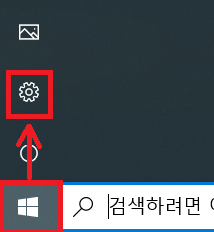 1. 윈도우즈10의 시작 아이콘을 클릭 후 설정 아이콘을 클릭합니다.