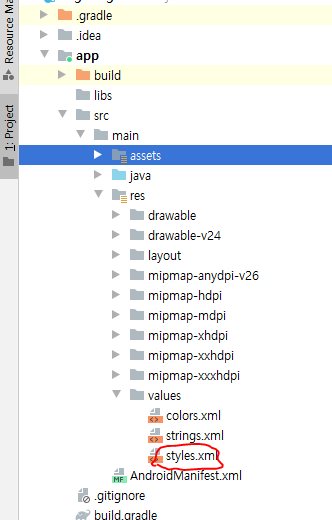 styles.xml 은 아래의 경로에 있습니다.