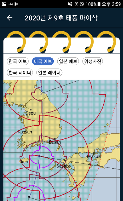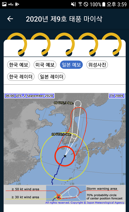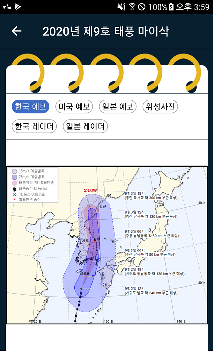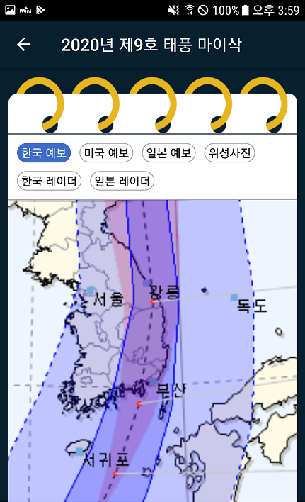 해당 정보는 안드로이드 태풍앱에서 정보를 캡처했습니다.