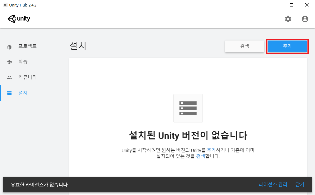4. 설치화면의 오른쪽 상단의 추가 버튼을 클릭합니다.