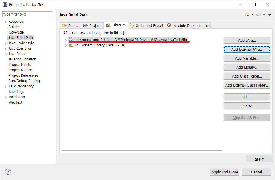 3. 클립스 프로젝트에 Jar를 Libraries에 추가하세요.