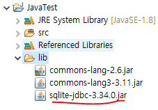 (1) 프로젝트 폴더 하위에 lib 폴더를 생성하고, SQLite JDBC Jar파일을 넣습니다.