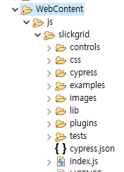 2. WebContent 하위에 js/slickgrid 폴더에 SlickGrid 소스를 넣습니다.