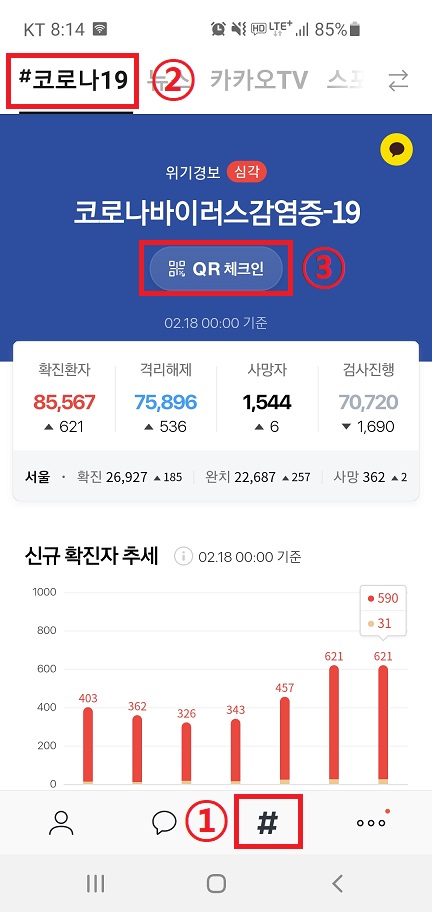 ② 상단의 "#코로나19"를 클릭합니다.