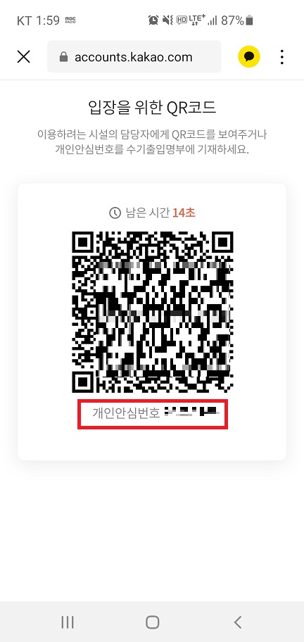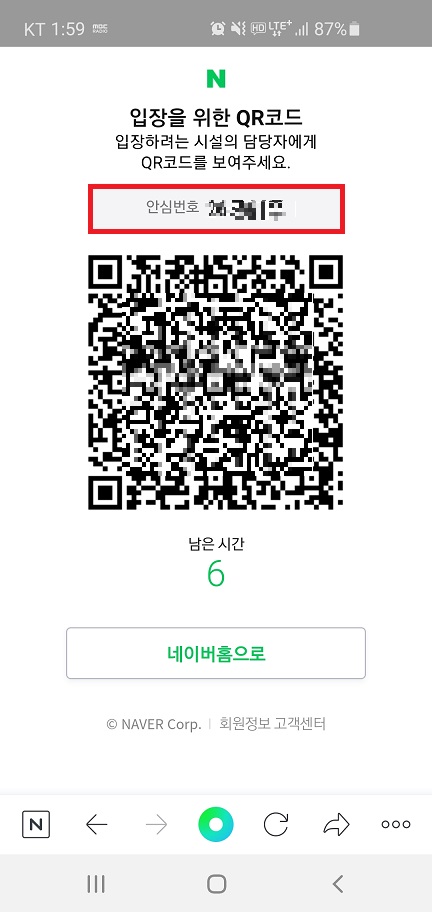 2월 19일부터 카카오톡과 네이버에서 QR코드 하단에 안심번호가 표시된다고 합니다.