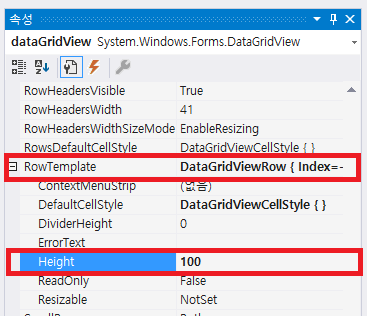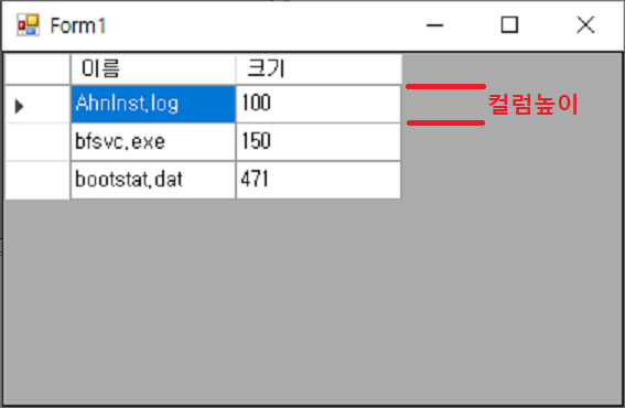 아래의 이미지는 DataGridView의 Column 높이입니다.