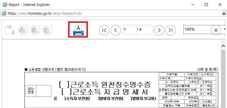 4. 근로소득 원천징수 영수증을 출력하면 됩니다.