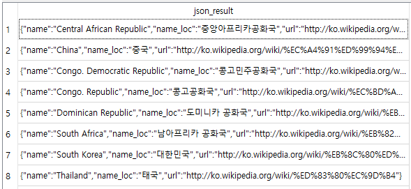 json_object('name', NAME, 'name_loc', NAME_LOC, "url", WIKI_URL)