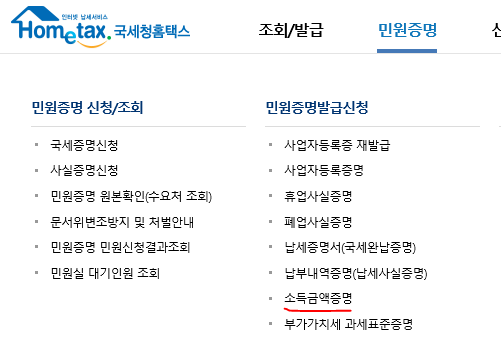 홈택스에서 소득금액증명원 발급받는 방법입니다.