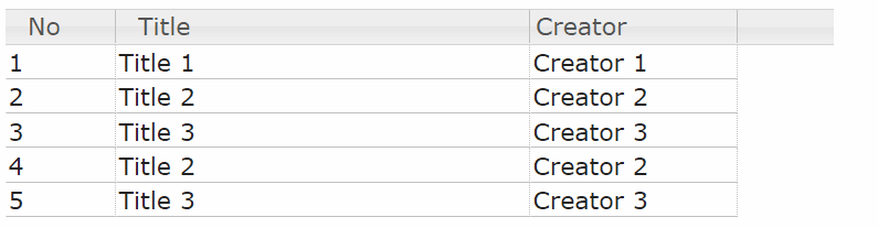 { no: 3, title: "Title 3", creator:"Creator 3"},
