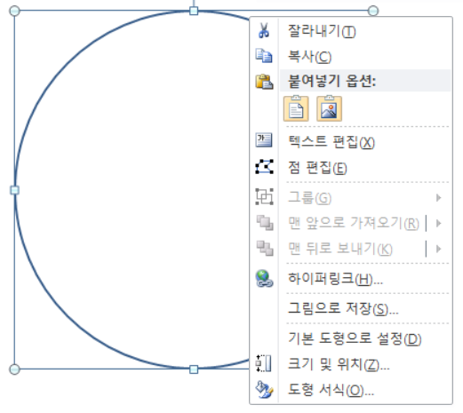 1. 도형을 선택 후 마우스 우클릭하여 팝업 메뉴에서 도형 서식을 클릭합니다.