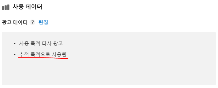 ※ 앱이 수집하는 개인정보에서 광고데이터에 "추적 목적으로 사용됨"을 선택하면 됩니다.