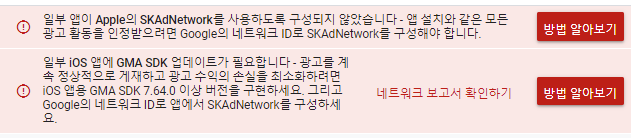 애드몹 사이트에서 아래와 같이 2가지 알림이 표시되는데 해당 건을 처리하는 방법입니다.