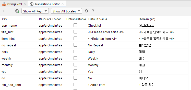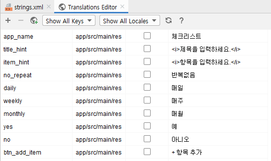한국어로 개발된 안드로이드 앱에 영어를 추가하려고 합니다.