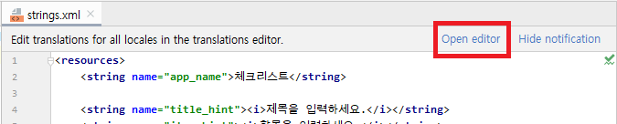 2. 상단의 Open Editor를 클릭하여 Translations Editor를 엽니다.