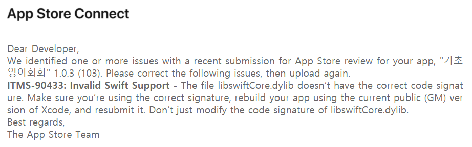 React-Native에서 개발한 앱이 iOS 심사에서 반려를 받고 상태가 "Invalid Binary"로 바뀌었습니다.