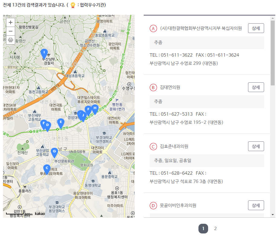 5. 금연 클릭닉 병원 정보가 표시됩니다.