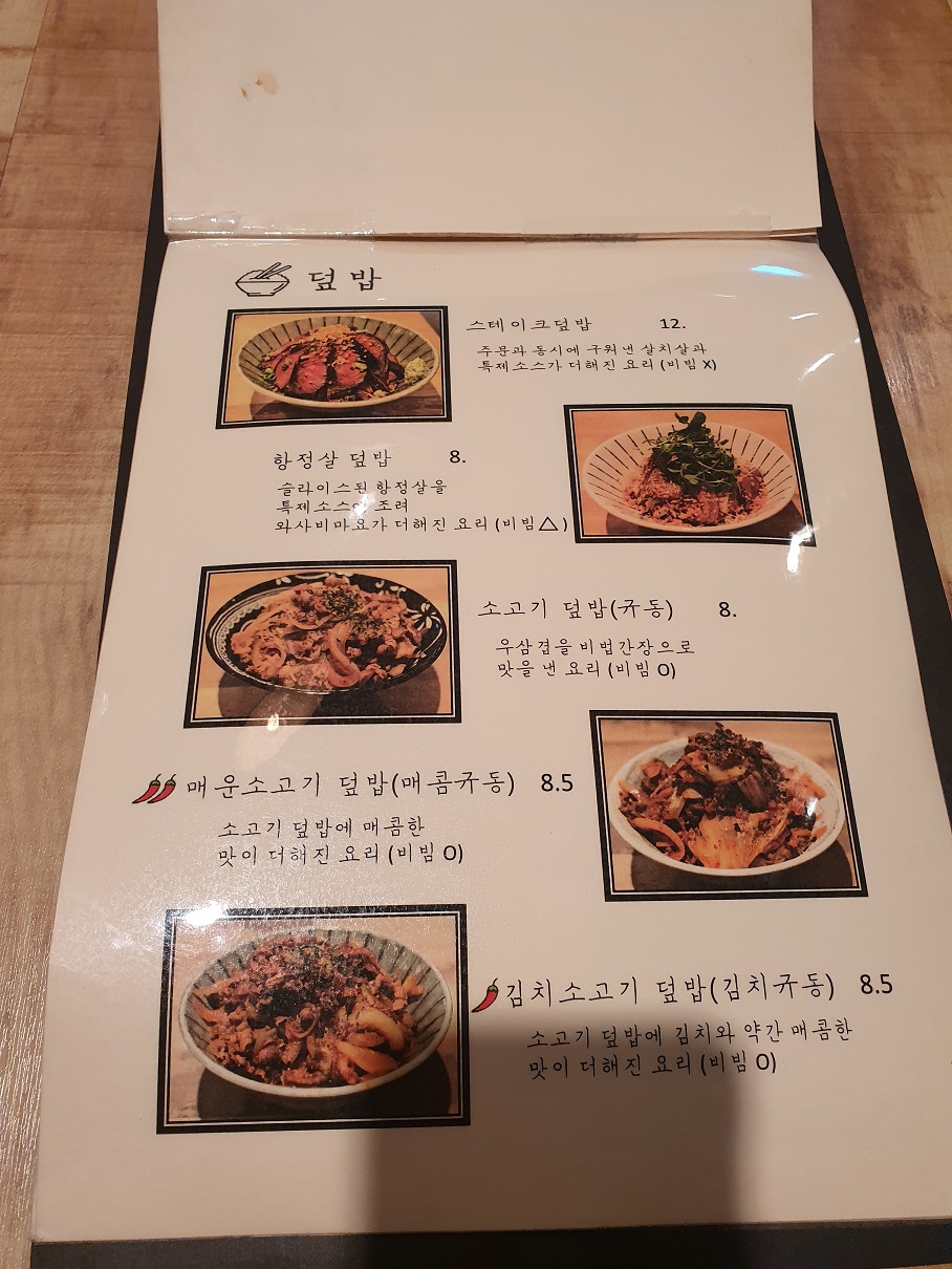 주로 일본식 덮밥을 판매하고 있으면 다양한 메뉴가 있습니다.