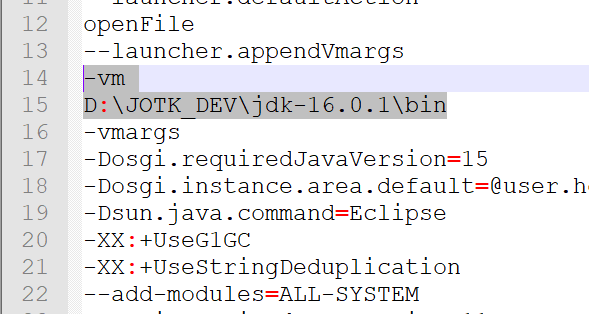 2. 이클립스 설치 폴더내의 eclipse.ini에 vm 경로를 Open JDK로 지정합니다.