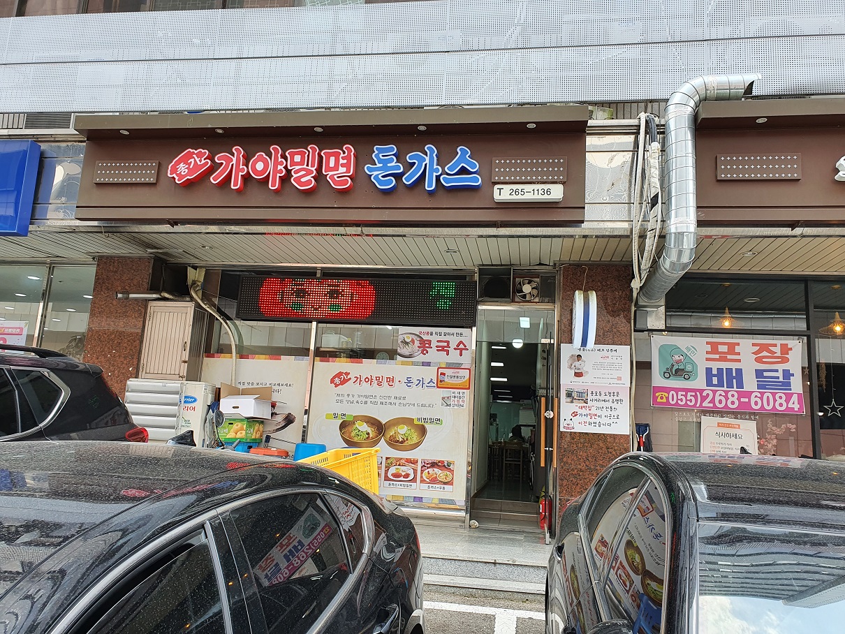 창원 중앙동 이마트 뒤에 위치한 밀면집인데 돈가스와 함께 즐길 수 있는 맛집입니다.