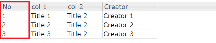 { col1: "Title 3", col2: "Title 2", creator:"Creator 3"}