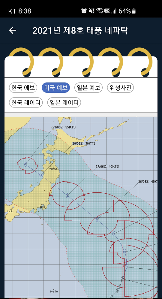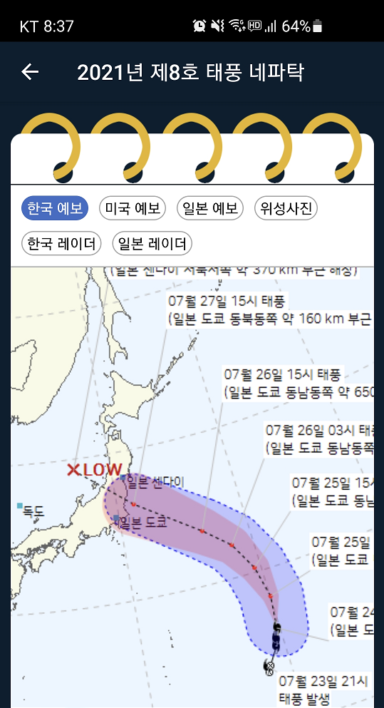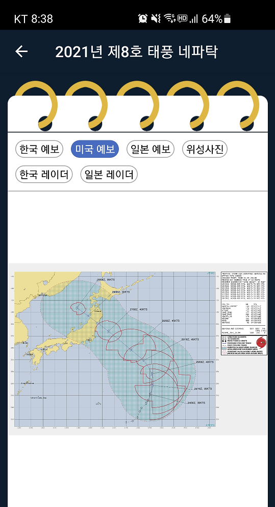 해당 정보는 안드로이드 태풍앱에서 정보를 캡처했습니다.