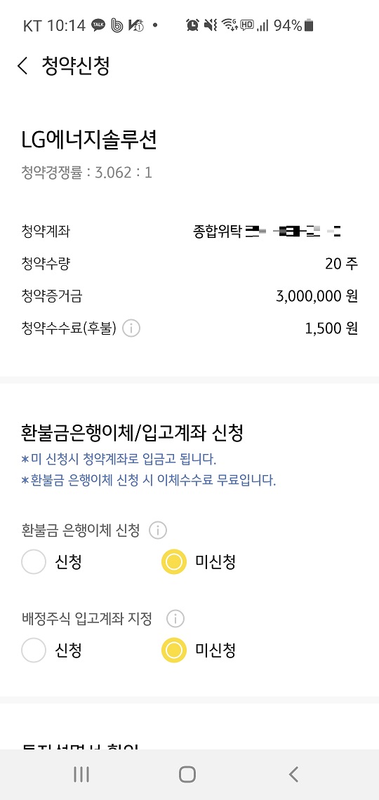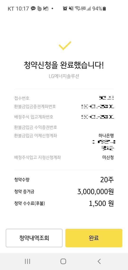 13. LG에너지솔류션 공모주 청약을 완료했습니다.