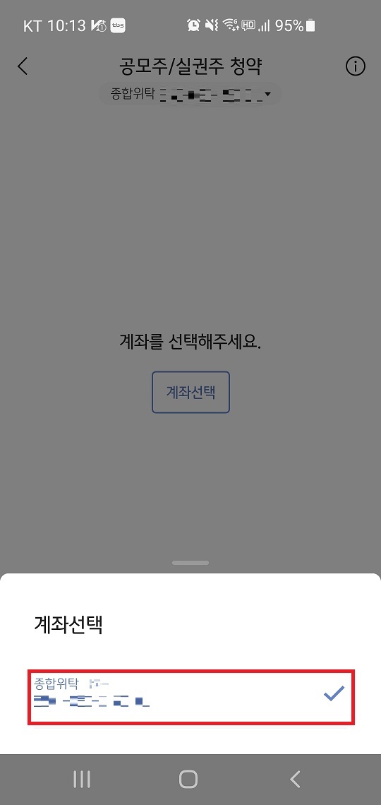 5. 공모주를 청약 할 계좌를 선택합니다.