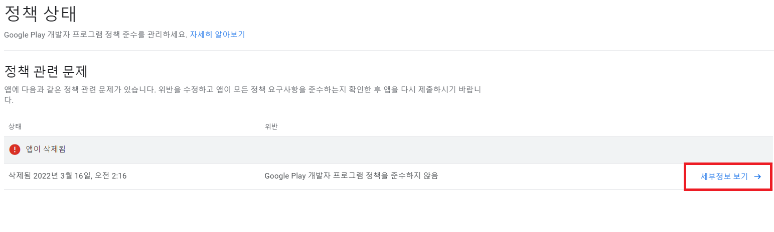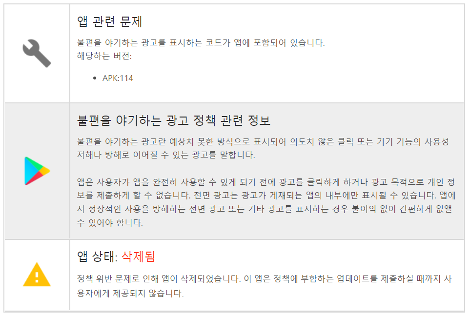 제가 경험한 Google Play 정책 위반으로 앱이 삭제 된 경우