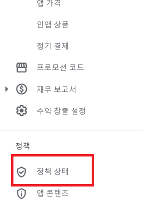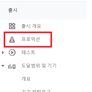 1. Google Play Console의 외쪽 메뉴에서 프로덕션을 클릭합니다.