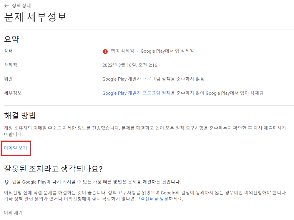 정책 위반을 해결 후 앱 검토 받기