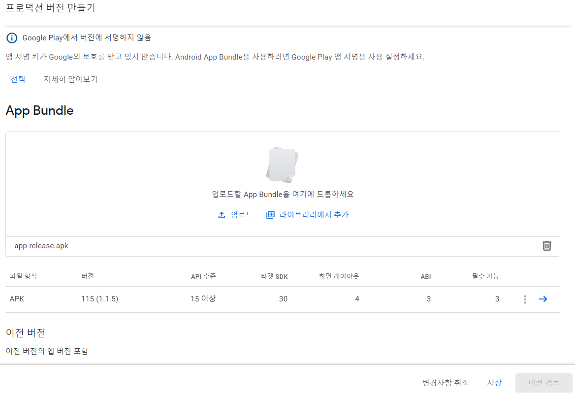 2. 앱을 업로드 하고 버전검토를 합니다.