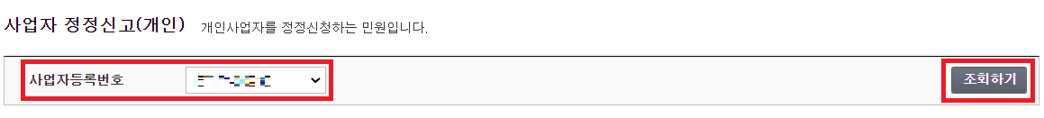2. 해당 사업자등록번호를 선택하고 조회하기 버튼을 클릭합니다.