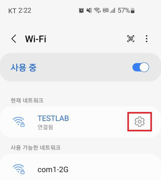 1. 연결된 와이파이의 설정 아이콘을 터치합니다.