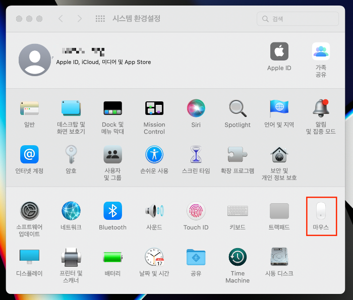 2. 시스템 환경설정에서 마우스를 클릭합니다.