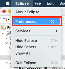 1. Eclipse > Preferences 메뉴를 클릭합니다.