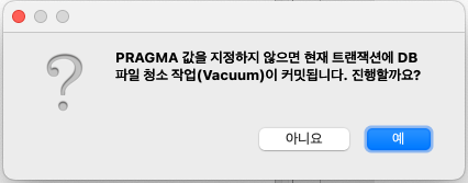 2. DB Browser for SQLite에서 VACUUM을 쿼리 실행 화면에서 실행합니다.