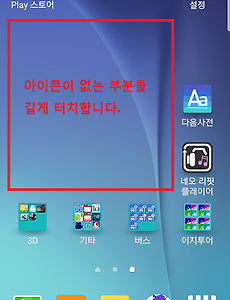 갤럭시90 갤럭시S6 - 스팸 해제 스팸 번호를 지정된 항목을 해제하는 방법입니다. 1. 홈화면 또는 앱스에서 메시지를 터치합니다. 2. 메시지 화면에서 더보기를 터치합니다. 3. 더보기 메뉴에서 설정을 터치합니다. 4. 메시지 설정에서 스팸 필터를 터치합니다. 5. 스팸 필터화면에서 스팸 번호 관리를 터치합니다. 6. 등록되어 있는 스팸 번호의 오른쪽에 -를 터치하여 스팸 번호를 해제합니다. 2015. 5. 11. 갤럭시S6 - 내 디바이스 찾기 삼성 갤럭시 S6에서는 스마트폰을 분실했을 경우를 대비하여 내 디바이스 찾기라는 기능을 제공하고 있습니다.내 디바이스 찾기에는 위치정보, 벨소리 울리기, 초절전 모드, 화면 잠금, 통화기록 조회 등의 기능을 제공합니다. 1. 내 디바이스 찾기 설정(1) 홈 화면 또는 앱스 페이지에서 설정을 터치합니다. (2) 설정 화면에서 잠금화면 및 보안을 터치합니다. (3) 잠금화면 및 보안 화면에서 내 디바이스 찾기를 터치합니다. (4) 삼성 계정으로 로그인 합니다. (5) 내 디바이스 찾기 설정을 합니다. - 원격 제어 : 벨소리 울리기, 긴급모드, 초절전 모드, 화면 잠금 등의 기능을 사용할 수 있다. - Google 위치 서비스 : Off가 되어 있어도 위치 찾기 기능을 사용 할 수 있습니다. 2. 디바이스 .. 2015. 5. 9. 갤럭시S6 - 언어 설정 갤럭시 S6는 여러가지 언어설정을 할 수 있습니다.언어 설정 방법을 알아보겠습니다. 1. 설정을 터치합니다. 2. 설정 화면에서 언어 및 입력 방식을 터치합니다. 3. 언어 및 입력 방식 화면에서 언어를 터치합니다. 4. 자신이 원하는 언어를 선택하면 언어 설정이 완료됩니다. ※ 아래의 이미지는 언어설정을 영어로 했을 경우의 설정 화면입니다. 2015. 5. 8. 갤럭시S6 - 파일 매니저 갤럭시S6에서는 파일 매니저가 도구 폴더에 있어 처음에 찾기가 힘들었습니다.파일 매니저에 대해 간략하게 소개합니다. 1. 앱스 화면에서 도구를 터치합니다. 2. 도구 폴더에서 내 파일을 터치합니다. 3. 파일 매니저가 실행된 모습니다. (1) 카테고리 : 이미지, 동영상, 오디오 등의 목록을 쉽게 찾을 수 있습니다. (2) 로컬 저장 공간 : 스마트폰의 로컬 파일을 복사, 이름변경 등을 할 수 있습니다. (3) 디바이스 저장공간 : 저장공간의 사용량을 보여줍니다. (4) Google 드라이브 : 구글 드라이브와 연동되는 것을 생각됨. 4. 숨김 파일을 표시하기 위해서는 더보기를 터치합니다. 5. 숨김 파일 표시를 터치합니다. 6. 파일을 찾기 위해서는 검색을 터치합니다. 7. 찾고자 하는 파일 이름을 입.. 2015. 5. 7. 갤럭시S6 - 구글 계정으로 연락처 동기화하기 안드로이드 폰을 사용하면 구글 계정으로 연락처를 동기화시킬 수 있습니다.스마트폰 기기를 변경하거나, 공장초기화를 할 경우 구글 계정의 연락처를 쉽게 동기화를 할 수 있습니다. 1. 구글 계정 연락처 동기화는 기본적으로 사용 할 수 있도록 설정되어있습니다. 설정을 터치하여 구글계정 연락처 동기화를 확인 해보겠습니다. 2.설정화면에서 계정을 터치합니다. 3.계정 화면에서 Google을 터치합니다. 4.Google계정 화면에서 자신의 계정(xxxxx@gmail.com)을 터치합니다. 5.여러 동기화 설정 중 연락처 동기화의 설정을 확인합니다. 연락처 동기화가 사용중일 경우만 동기화가 가능합니다. 6.연락처를 등록하기 위해 연락처를 터치합니다. 7.연락처 화면의 오른쪽 하단의 (+) 아이콘을 터치합니다. 8.연.. 2015. 5. 7. 갤럭시S6 - 어벤져스 테마 갤럭시S6에는 다양한 테마를 설정 할 수 있습니다.그중에서 어벤져스 테마가 있는데, 헐크/토르/아이언맨 등의 테마를 적용할 수 있습니다. 1. 홈화면에서 아이콘이 없는 부분을 길게 터치합니다. 2.테마를 터치합니다. 3.스토어를 터치합니다. 4.여러테마중에 어벤져스 테마의 더보기를 터치합니다. 5.어벤져스 테마중에 원하는 테마를 선택합니다. 저는 아이언맨을 선택하였습니다. 6.다운로드을 터치하여 아이언맨 테마를 다운로드 합니다. 7.동의 및 다운로드를 터치합니다. 8.아이언맨 테마의 다운로드 진행상태가 표시됩니다. 9.갤럭시S6에 테마를 설치합니다. (테마가 갤럭시S6에 적용되는 것은 아닙니다.) 10.적용을 터치합니다. 11.적용을 터치하여 테마를 적용합니다. 12.테마 적용 진행상태가 표시됩니다. 1.. 2015. 5. 5. 갤럭시S6 - 알람 위젯 갤럭시 S6에서 알람 위젯을 추가하는 방법입니다. 1. 홈화면에서 아이콘이 없는 부분을 길게 터치합니다. 2.아래 쪽 아이콘중 위젯을 터치합니다. 3. 알람(2X1)을 터치합니다. 4.드래그를 하여 원하는 위치에 위젯을 놓습니다. 5. 알람 위젯이 홈화면에 표시됩니다. 알람 위젯을 터치합니다. 6.알람을 설정 후 저장을 터치하면 알람이 설정됩니다. (1) 날짜 선택 : 특정 날짜에 알람을 설정 (2) 알람 시계 : 알람 시간을 설정 (3) 매주 반복 : 요일별 반복 주기 설정 (4) 알람방식 : 소리, 진동 등으로 알람 설정 (5) 알람음 : 알람음을 설정 (6) 다시 울림 : 5분간격으로 3번 알람 울림을 설정 (7) 소리 점점 크게 : 알람음이 점점 커지게 설정 (8) 알람 이름 : 알람 이름을 지정.. 2015. 5. 5. 갤럭시S6 - com.google.process.gapps 오류 메세지 플레이 스토어에서 업데이트 앱들을 업데이트하였습니다.그 이후로 "com.google.process.gapps 프로세스를 중지